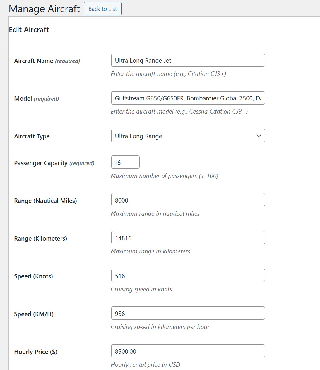 WP AeroQuote is a powerful WordPress plugin that instantly adds a global private jet itinerary search to your charter website. It allows your clients to search for aircraft categories and submit quote requests for their specific travel needs.